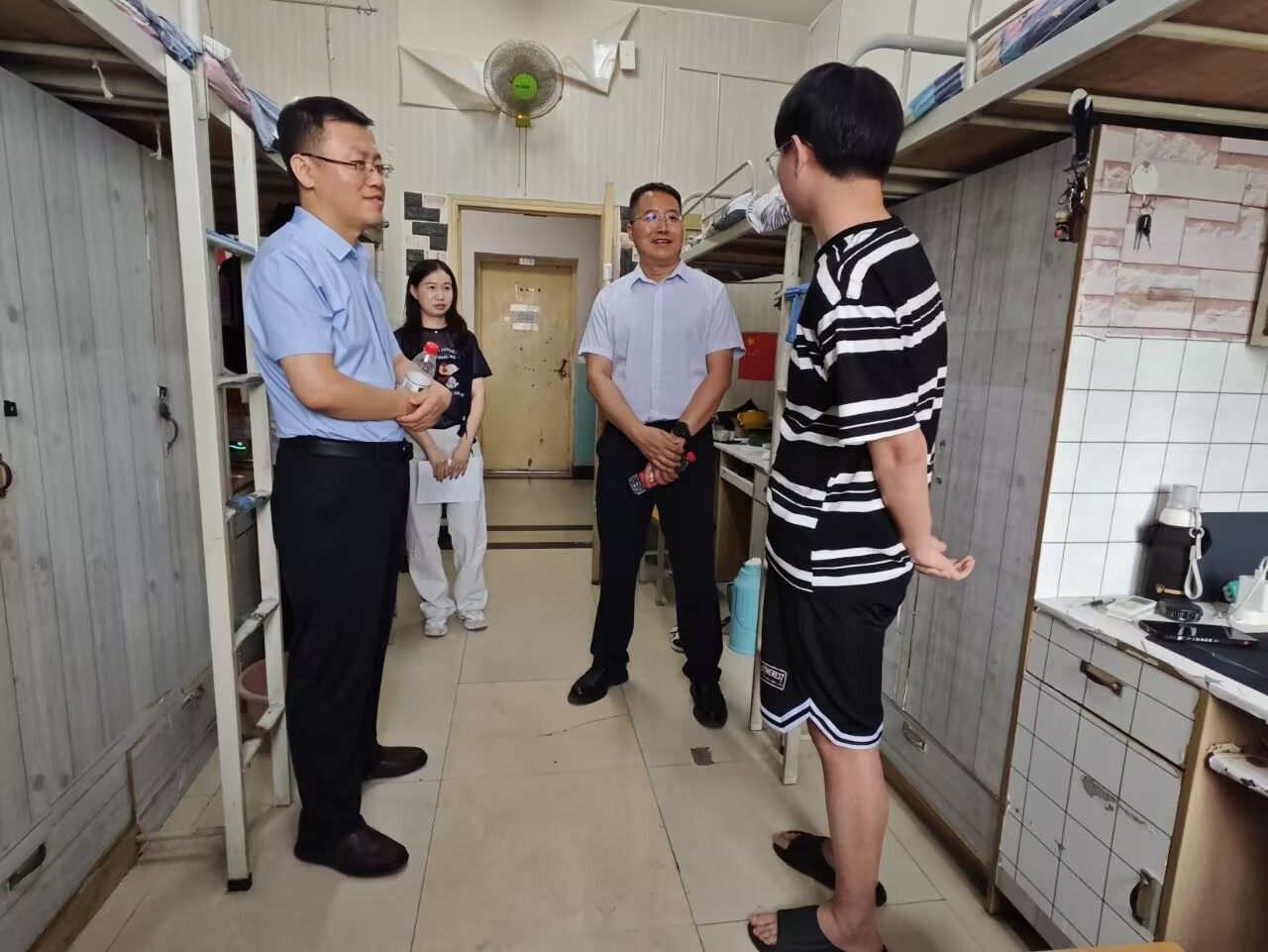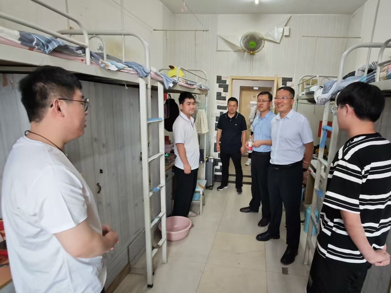 6月17日,公司党委书记席利哲,经理折延宏,副书记杨富民带领员工工作办公室副主任庞波,毕业班辅导员林晔一起深入毕业生宿舍,开展走访慰问活动,为即将踏上新征程的毕业生们送去学院的关怀与祝福。