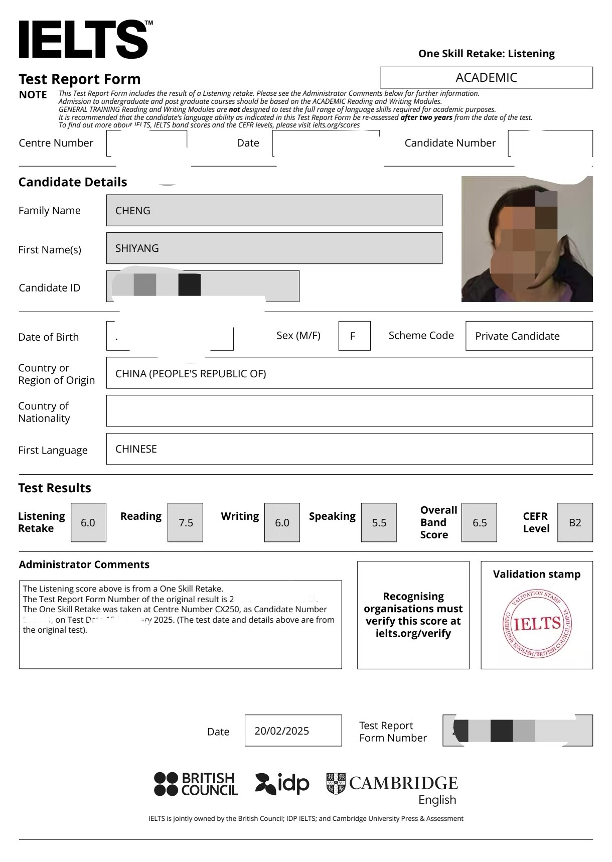 语言成绩:雅思6.5