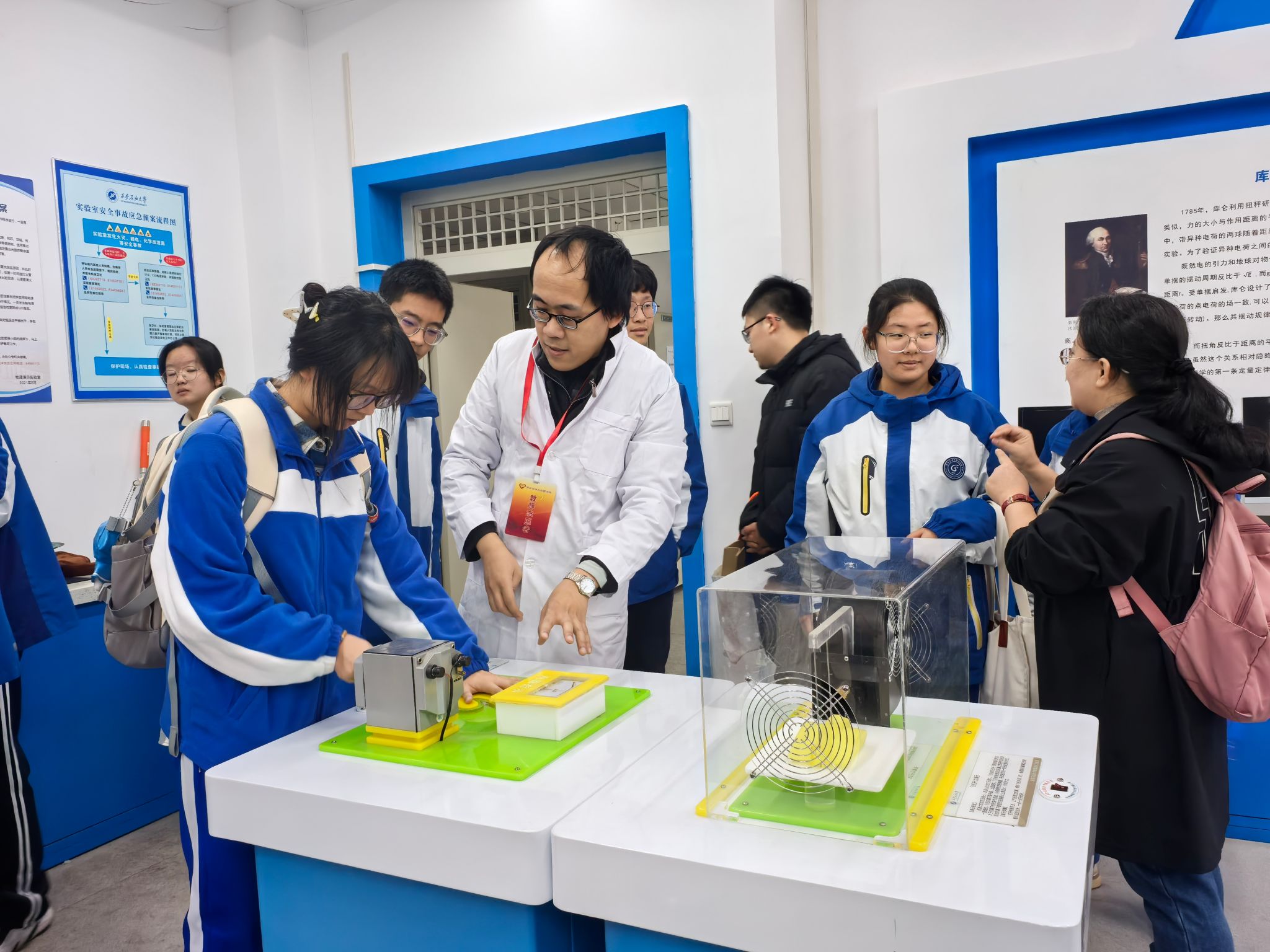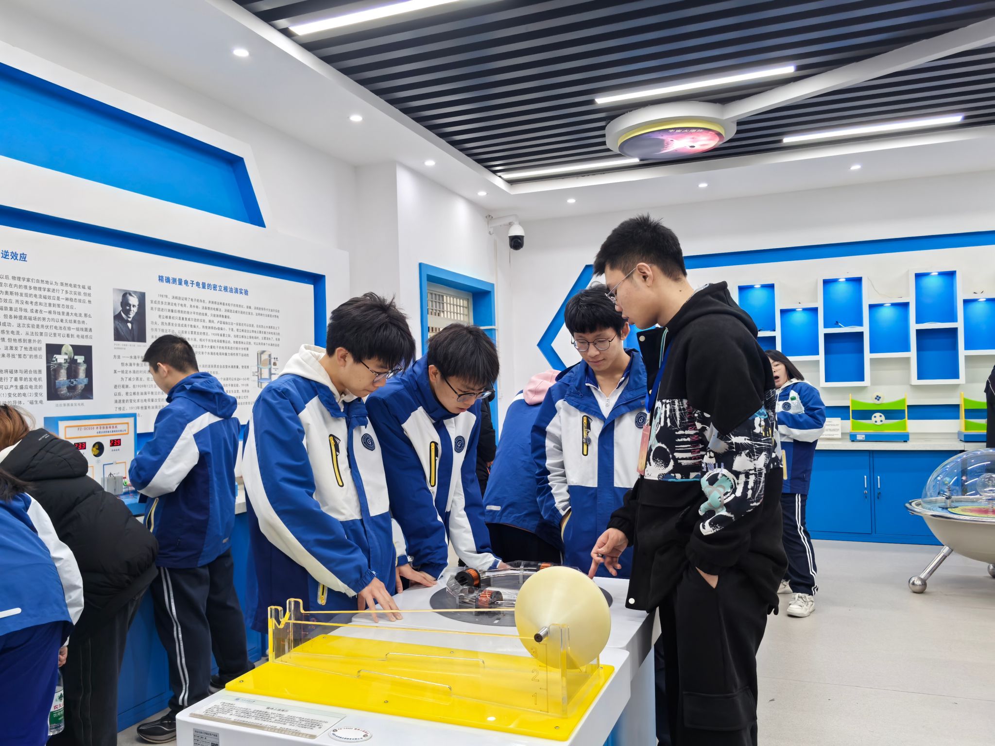 研学活动第二站来到永利yl23411物理演示实验室。物理演示实验室是陕西省科普教育基地,是集图像演示、实物操作等功能为一体的开放性实验室,涵盖了力学、电磁学、光学、热学等方面知识。永利yl23411师生志愿者分组带领五高师生进入实验室,逐一演示了引人入胜的雅各布天梯,生动展现了电流的神秘跃动等,让参观者直观感受到能量转换的奇妙过程;震撼人心的电磁炮发射,以直观、震撼的方式诠释了电磁力的强大威力。这些精心设计的演示活动,不仅激发了员工对物理学奥秘的好奇心与探索欲,更为大家搭建起了一座通往科学殿堂的桥梁,让物理之美跃然眼前,深入人心。