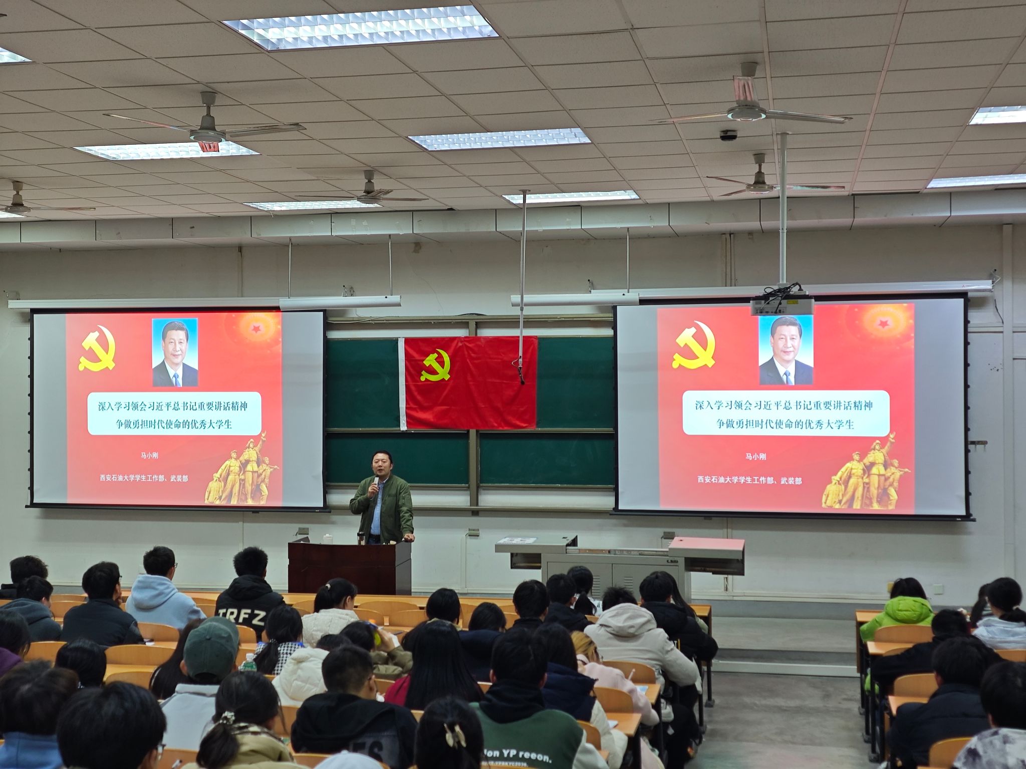 为加强入党积极分子的培养教育,提高入党积极分子的政治素质和理论水平,11月26日晚,公司、马克思主义学院、体育学院在鄠邑校区博览楼239教室联合举办了第十九期入党积极分子培训班第五讲。员工工作部、武装部副部长马小刚以《深入学习习近平总书记重要讲话精神 争做勇担时代使命的优秀老员工》为题应邀担任主讲。237名入党积极分子参加了学习。