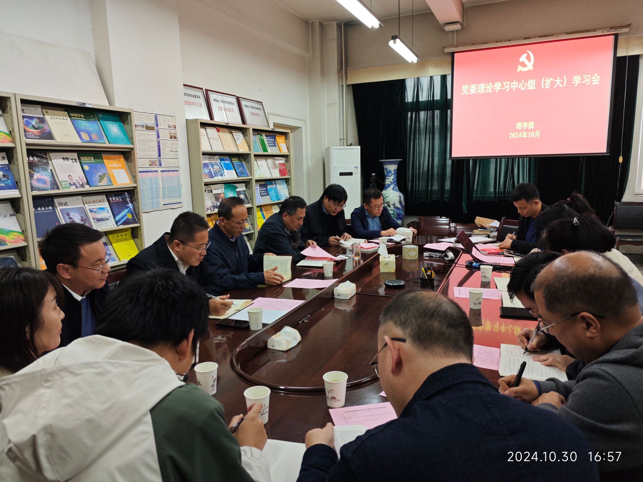 10月30日下午,公司党委在雁塔校区东方石油楼501会议室召开理论学习中心组(扩大)学习会,副董事长张君涛参加并指导专题学习。