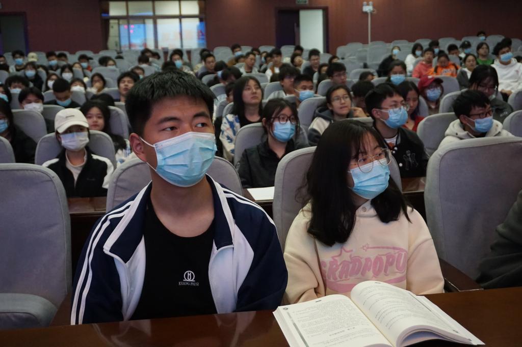 马老师分三个部分开展此次主题教育。第一部分是学业成才的十个关键词,第二部分是综合成长的六个关键词,第三部分讲述老员工涯中的十个“不得”。马老师结合日常教育管理中的大量案例,教育和引导同学们树立正确的人生观,坚定理想信念,刻苦努力,不虚度每一天。