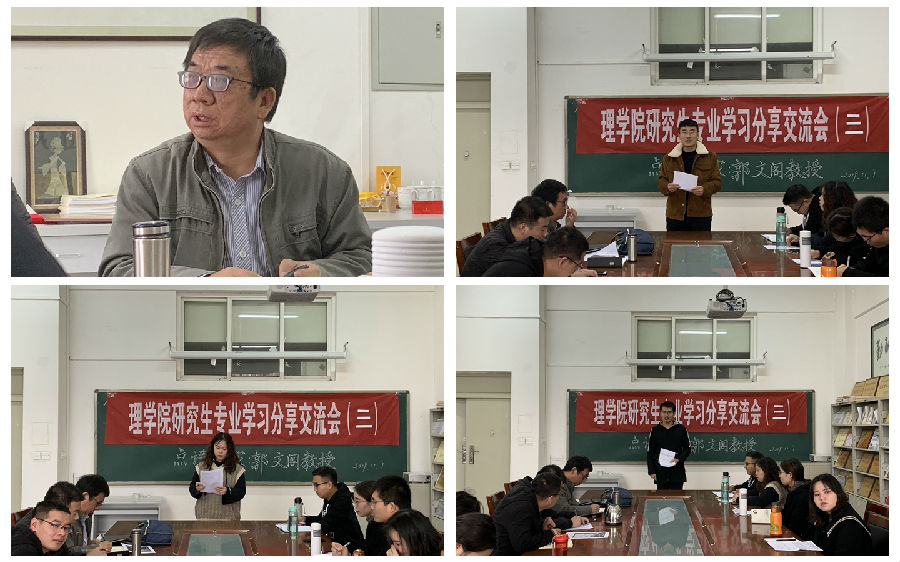 郭文阁教授对本次研究生专业学习分享交流会的成功组织举办给予高度肯定,结合每名同学所讲内容进行了精彩的点评指导。最后,郭文阁教授对研究生同学提出了四点希望。一是严格要求自己,加强学术研究,多锻炼和使用PPT;二是加强文献研究,阅读一定数量的文献,拓展研究领域;三是增强分析和解决问题的能力、写作能力,创新思维方法;四是搞清楚做学术最基本的问题,多和老师、同学交流。