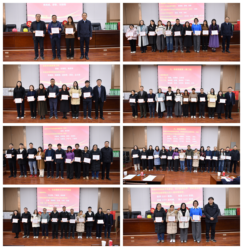 本次表彰以教学科研单位标志性业绩任务完成情况为主要依据,同时结合学院工作实际,对2025年在学院公共事务中默默奉献、做出突出贡献的集体和个人进行表彰。表彰名单经学院提名推荐、学院二级教代会审议、院内公示、党政联席会审定等流程,共设置九大类奖项,全面覆盖学院的核心工作:一是聚焦教学主业的“教学贡献奖”;二是围绕立德树人根本任务的“人才培养质量奖”;三是助力学科发展的“科研贡献奖”;四是彰显社会责任的“社会服务与学科声誉奖”;五是强化队伍建设的“人才队伍贡献奖”;六是护航员工成长的“就业贡献奖”;七是深耕班级管理的“优秀班主任奖”;八是丰富校园文化的“员工工作贡献奖”;九是赋能学院发展的“公共服务贡献奖”。