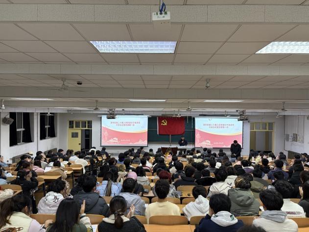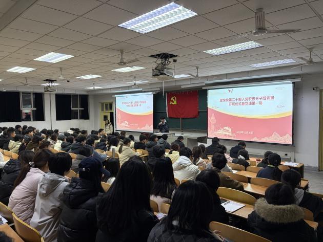 开班仪式后,员工工作部(处)部(处)长王亮作了开班第一讲。他以《以中国式现代化推动中华民族伟大复兴》为主题,以“新思想的核心要义与实践要求”为切入点,紧密结合党的二十大精神与公司专业特色,从“中国式现代化是实现中华民族伟大复兴的光明大道”、“中国式现代化的中国特色”、“中国式现代化的本质要求”、“推进中国式现代化的重大原则”四个维度展开讲解。他以通俗化表达拆解理论要点,重点列举我国航天工程、量子通信等领域的科研突破,生动阐释了青年党员在科技创新中的使命担当,鼓励同学们将数学、物理等专业所学与国家战略需求相结合,在实验室攻关、志愿服务、社会实践等场景中践行初心使命。