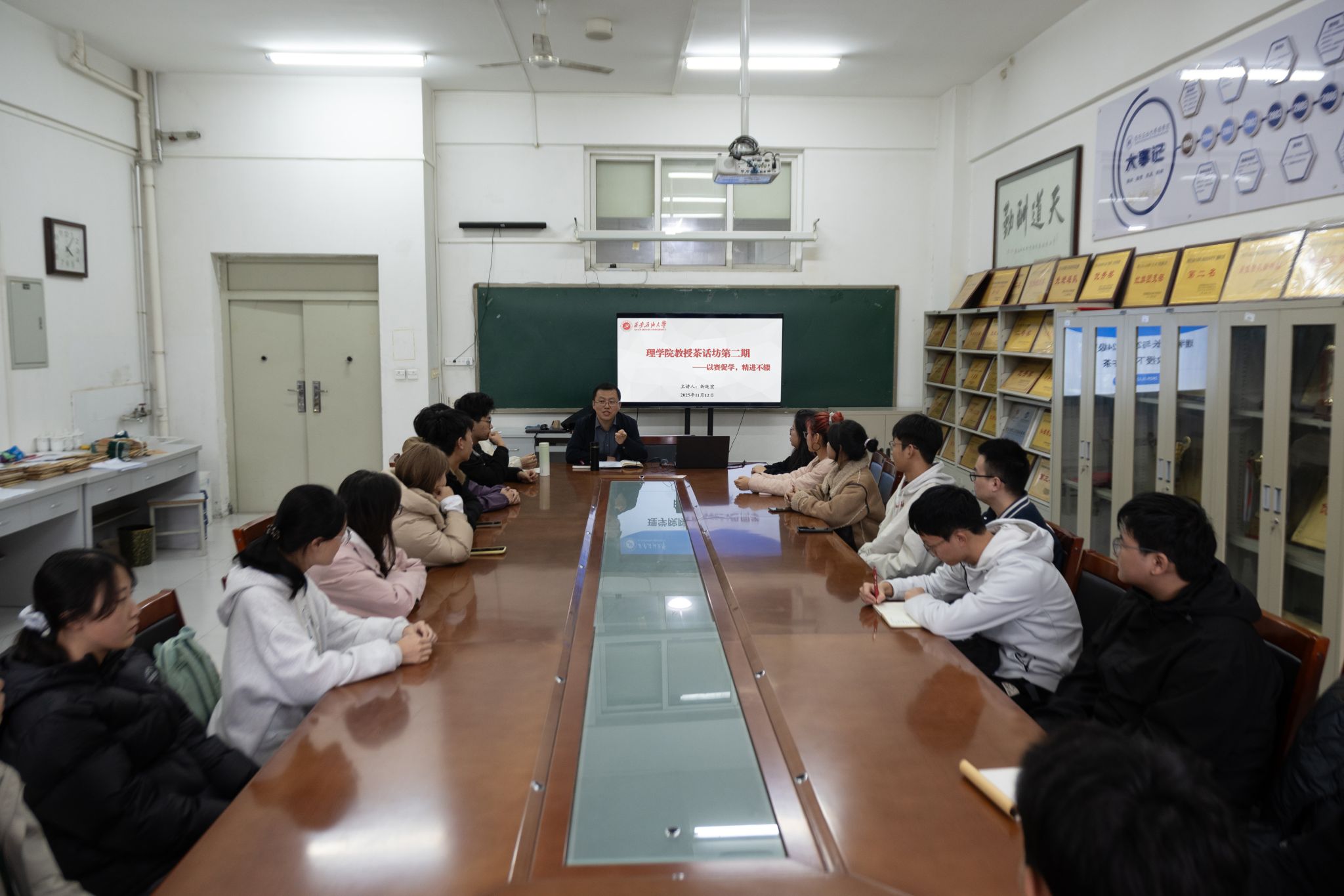11月12日,永利yl23411第二期“教授茶话坊”座谈活动顺利举行。本次活动由经理折延宏教授主持,聚焦“大学阶段如何高效参与学科竞赛”,与大二、大三年级员工代表展开深入交流,分享竞赛经验,解读支持政策,助力员工明晰发展路径。