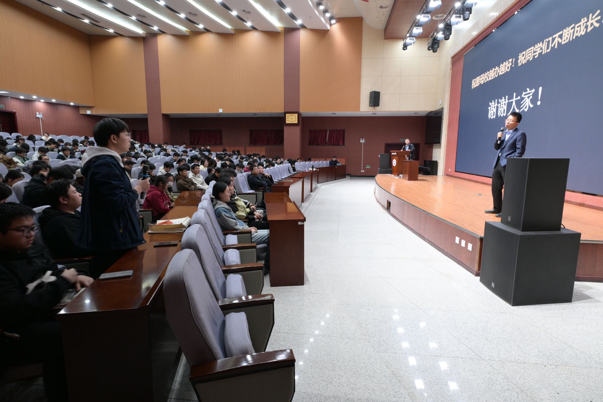 折延宏对叶坤员工的报告做总结发言。他表示,叶坤员工的求学、成长经历对与会同学们开眼界、拓视野、立大志、立长志具有积极的正向引导。他指出,机会留给有准备的人的前提是自身的全力拼搏,真正的高手在于透过现象看本质,由感性认识上升到理性认识。希望同学们珍惜大学时光,奋发作为、追求卓越,书写精彩青春,努力成长为勇挑重担、堪当大任的时代新人。