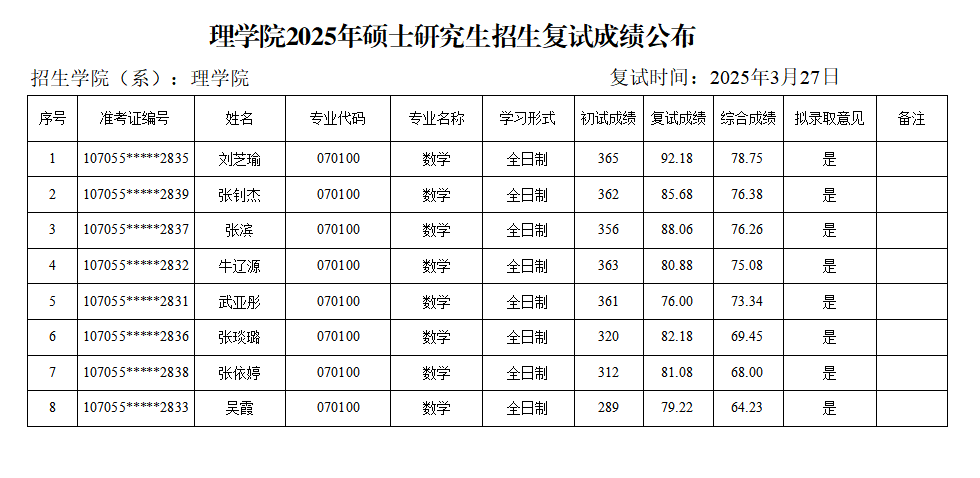 永利yl234112025年硕士研究生招生复试成绩公布(一志愿考生)