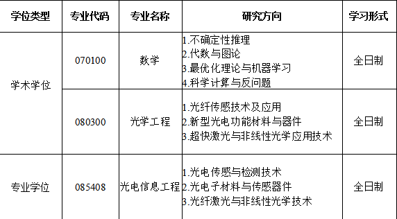 3.对于报考光学工程或光电信息工程的考生,测试内容为《物理综合》。复试采用随机抽取试题作答方式,测试时间10分钟,满分100分。同等学力考生在复试中还须加试2门与报考专业相关的且与初试科目不同的本科主干课程专业知识测试,测试范围为《光电技术》与《电子技术综合》,如考生初试科目与此相同,则测试范围为《大学物理》。加试科目的成绩不计入复试总成绩,但加试科目成绩有1门及以上不及格者不予录取。