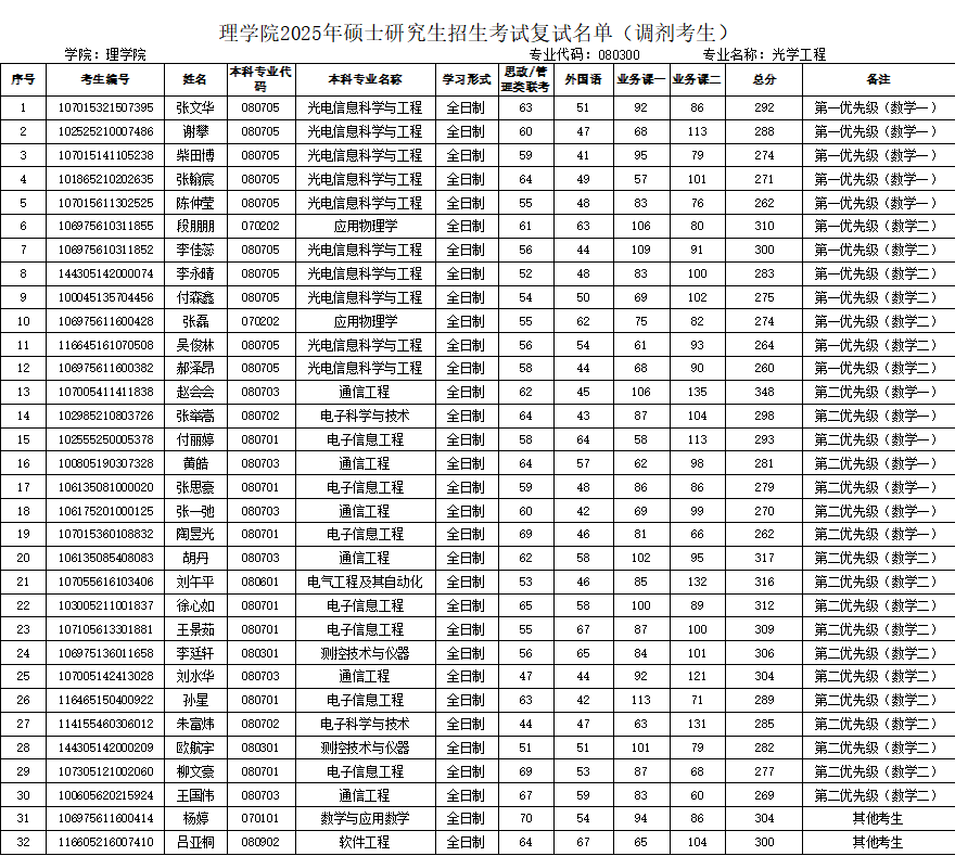 复试时间:数学4月9日14:00开始;光学工程4月9日8:30开始。