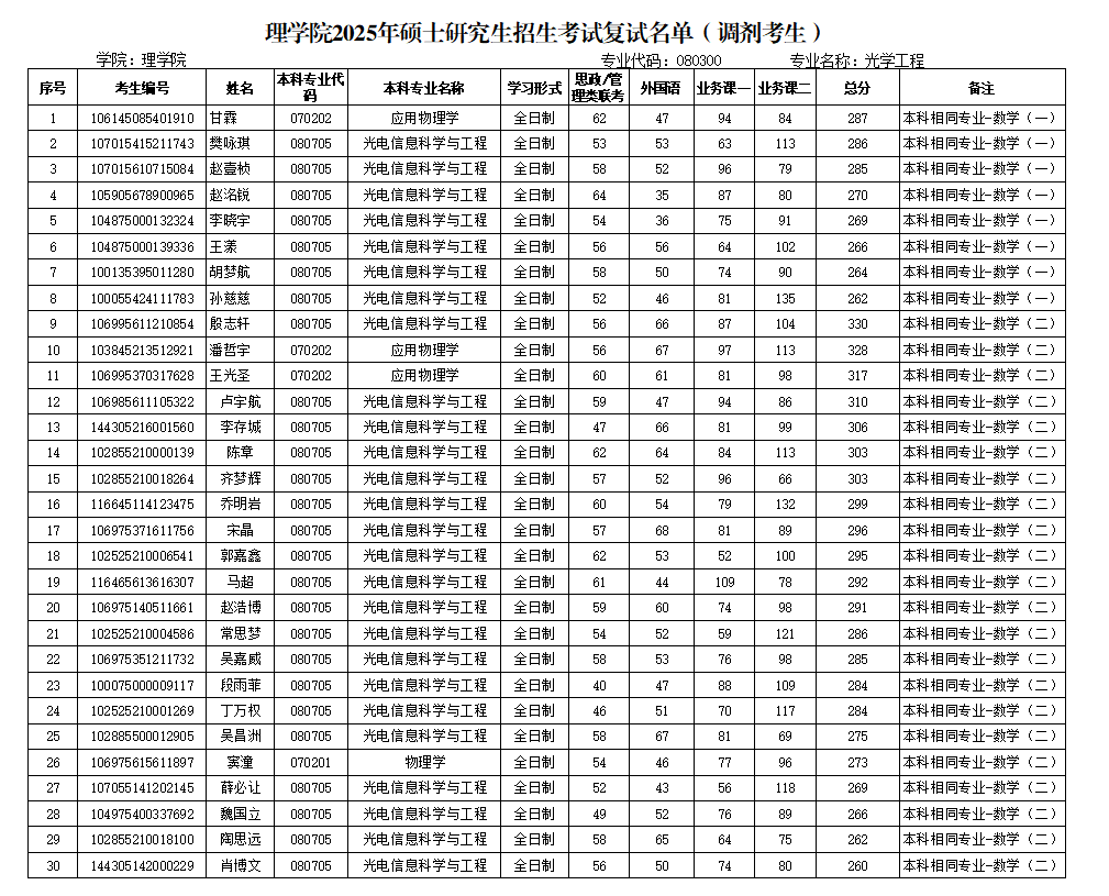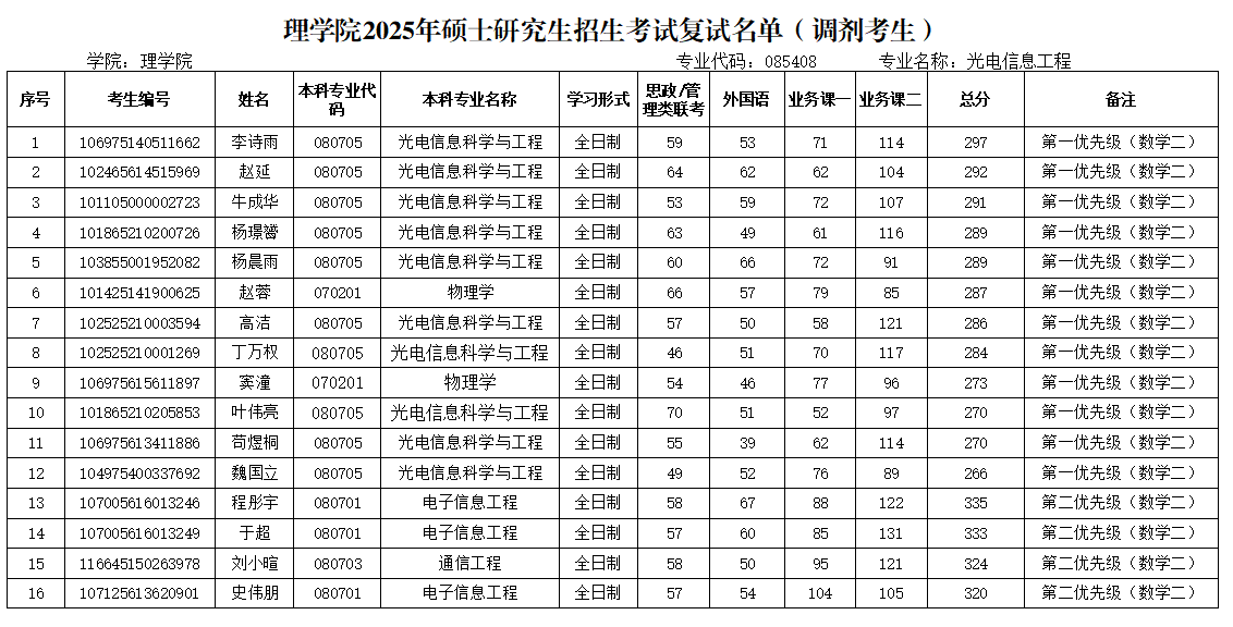 复试时间:光学工程4月11日15:00开始;光电信息工程4月11日15:00开始。