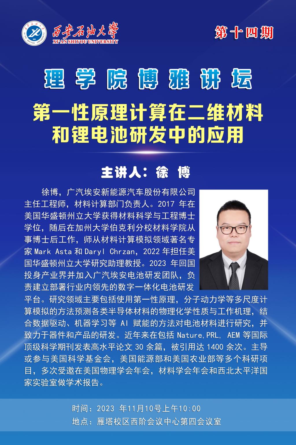 【博雅讲坛】第14期:第一性原理计算在二维材料和锂电池研发中的应用